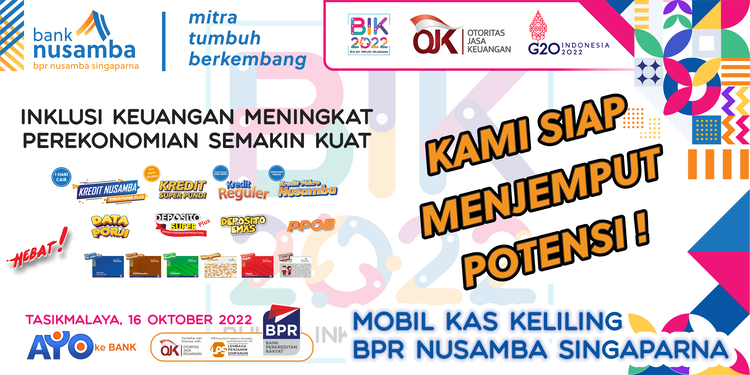 14 Okt Bulan Inklusi Keuangan OJK, bersama BPR Nusamba Singaparna Hadirilah! Bulan Inklusi Keuangan (BIK) Tasikmalaya bersama BPR Nusamba Singaparna, banyak hadia... OJK Public
